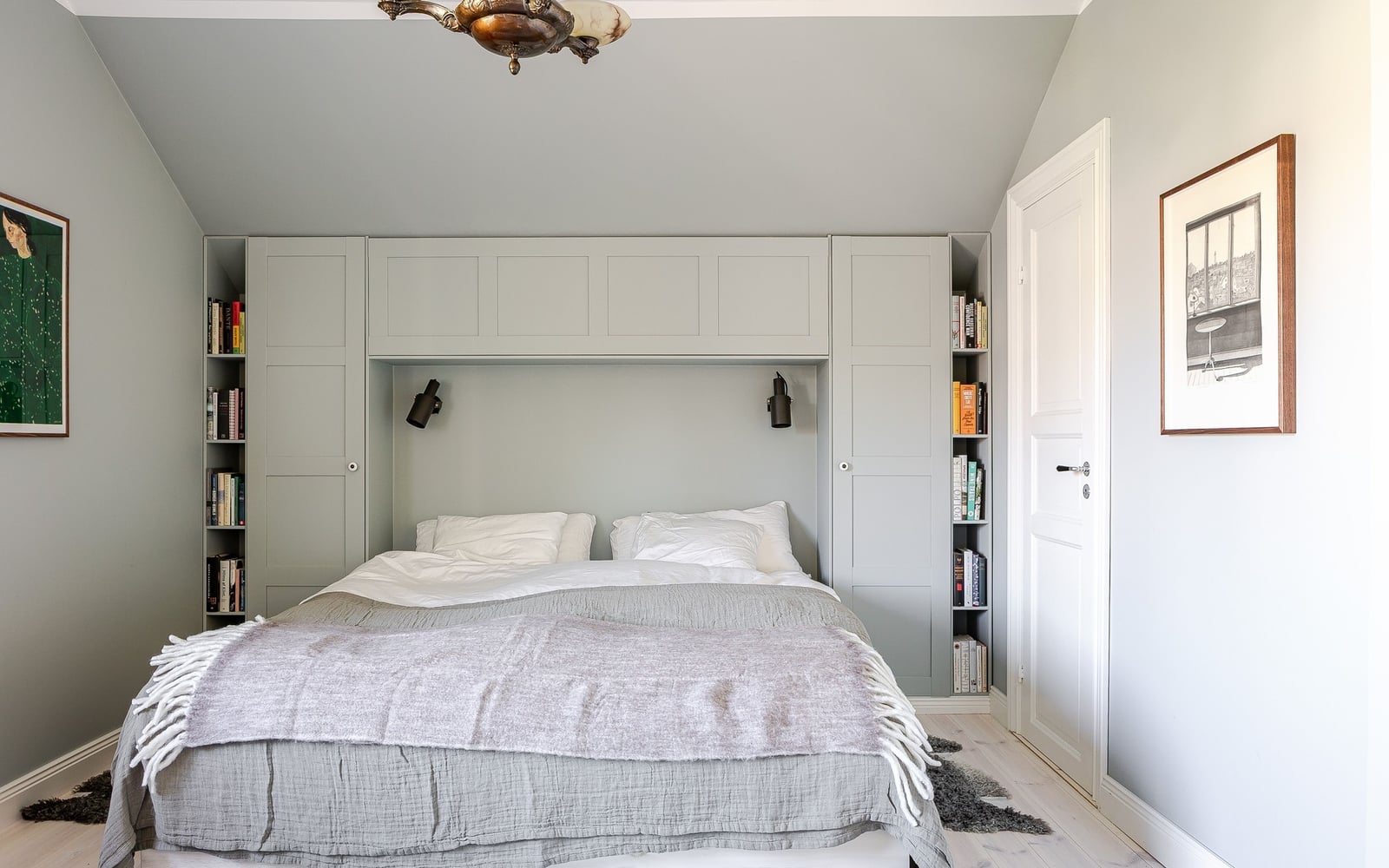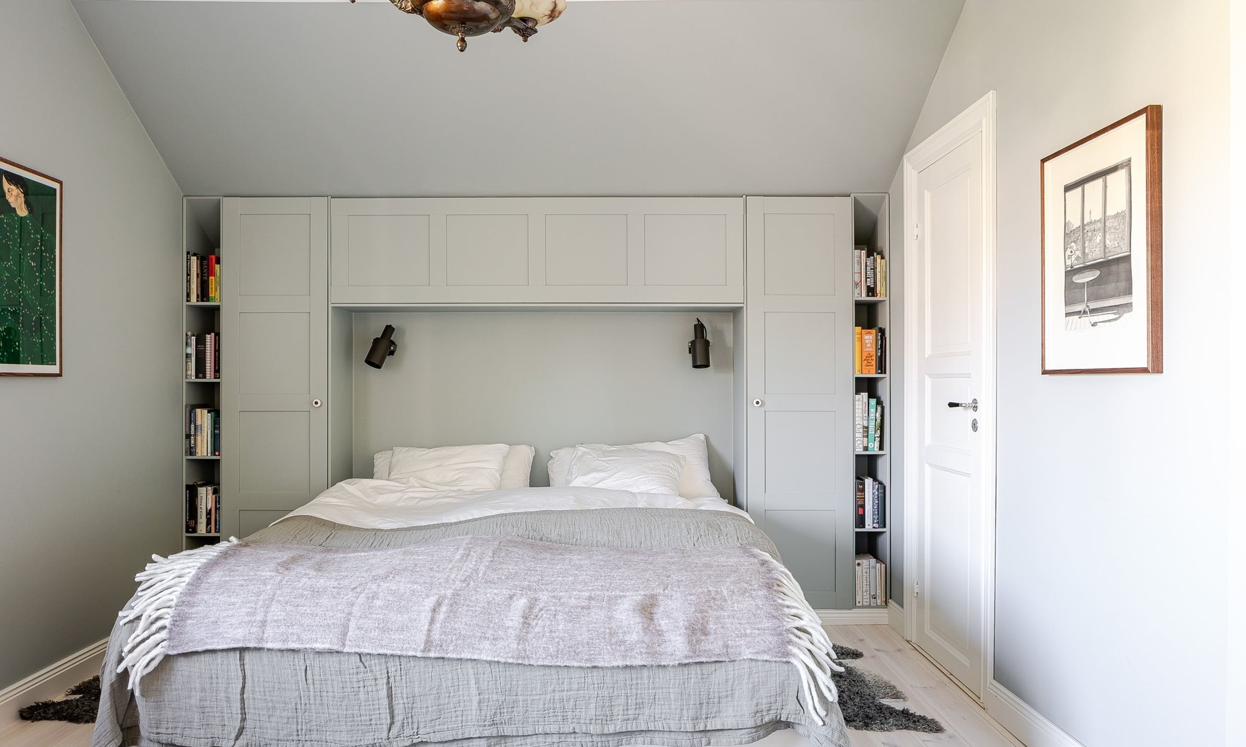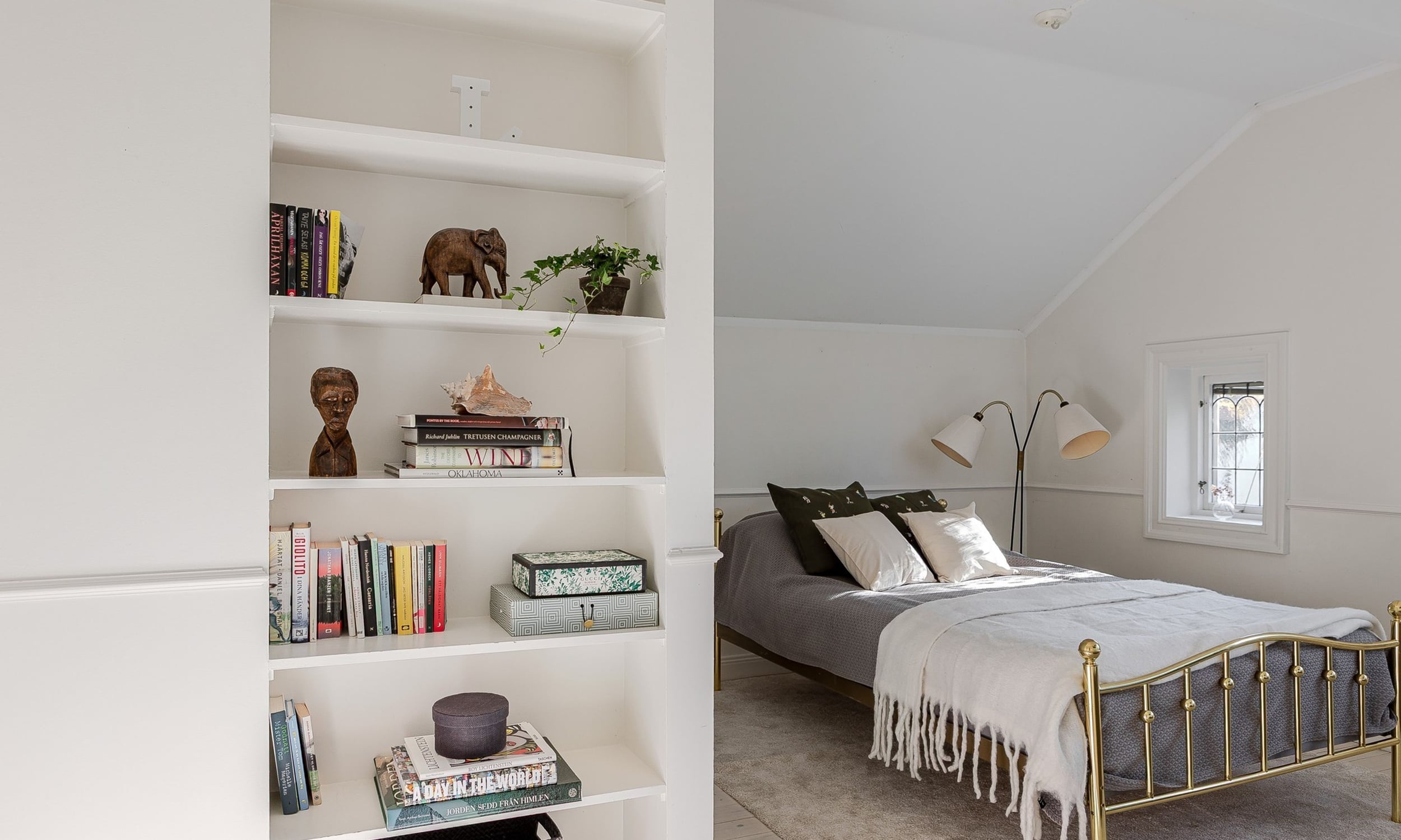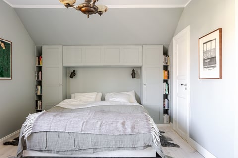 I övrigt är mycket av 1920-tals charmen bevarad på planet med trägolv, snickerier m.m. Sovrum 1 rymmer en dubbelsäng och har platsbyggd förvaring vid sänggavel samt en klädkammare. Sovrum 2 rymmer också en dubbelsäng och har en praktisk klädkammare. Sovrum 3 är också charmigt med alkov under snedtak. På planet finns det också ett stilrent badrum med badkar, toalett, takfönster och klinkergolv med vattenburen golvvärme.
