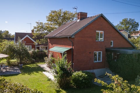Huset i 1,5 plan med källarvåning är ursprungligen från 1923 och byggdes till i slutet av 60-talet med en lyckad kombination av bevarad 1920-tals charm och karaktäristisk 60-tals arkitektur.