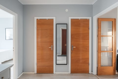 Lägenheten ligger på plan två av fyra och har en rymlig entréhall med avhängningsyta samt access till klädkammare, badrum, kök, vardagsrum och ett av sovrummen.